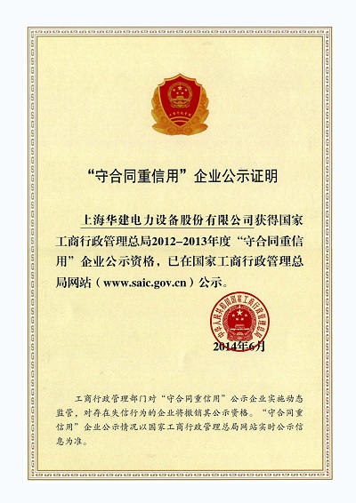 | 持证单位: 上海华建电力设备股份有限公司 |
