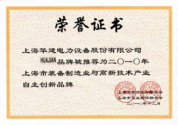 资质名称: 上海市装备制造业与高新技术产业自主创新品牌企业 |