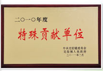 资质名称: 2010年度特殊贡献单位 |