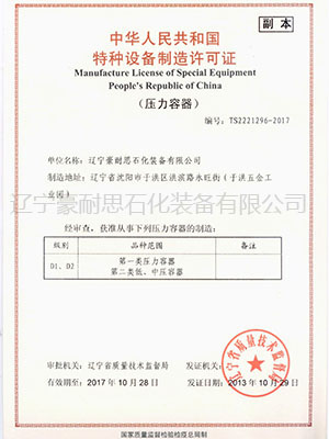 | 持证单位: 辽宁豪耐思石化装备有限公司 |