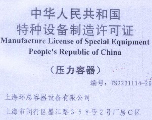 | 持证单位: 上海新瑞都化工机械有限公司 |