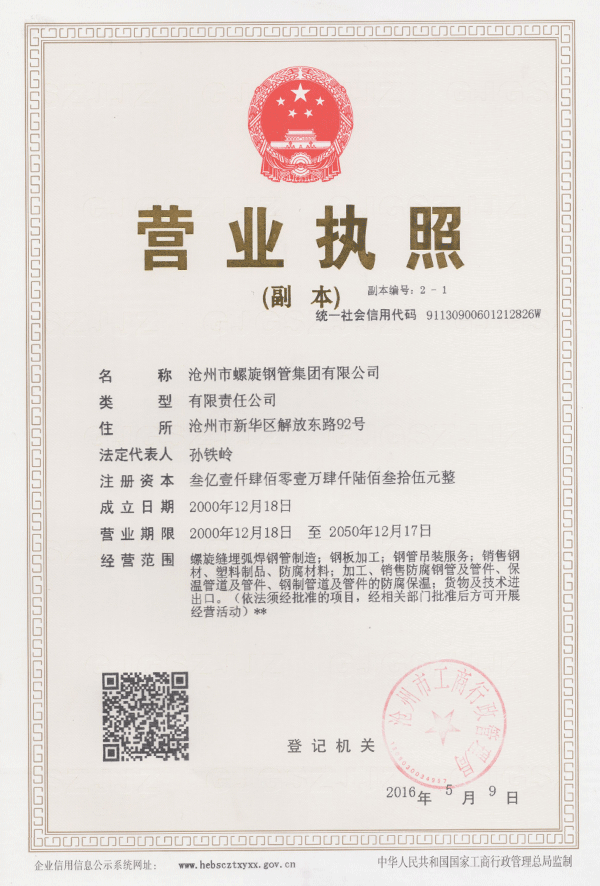沧州市螺旋钢管集团有限公司网站由中国服装招标网制做维护。内容真实性及解释权归沧州市螺旋钢管集团有限公司负责。