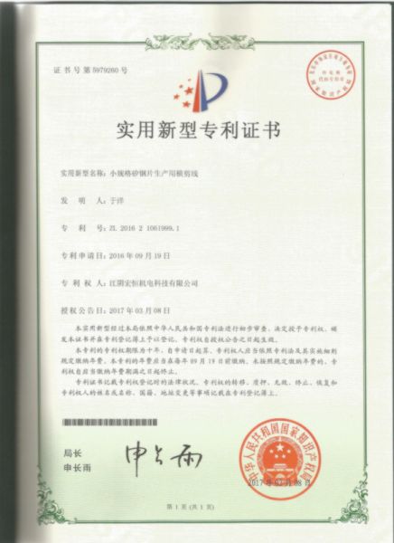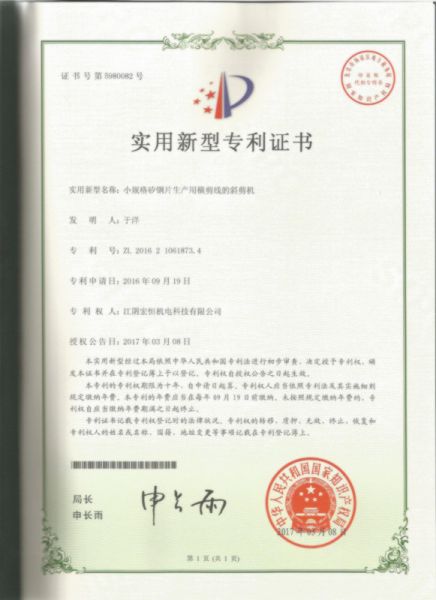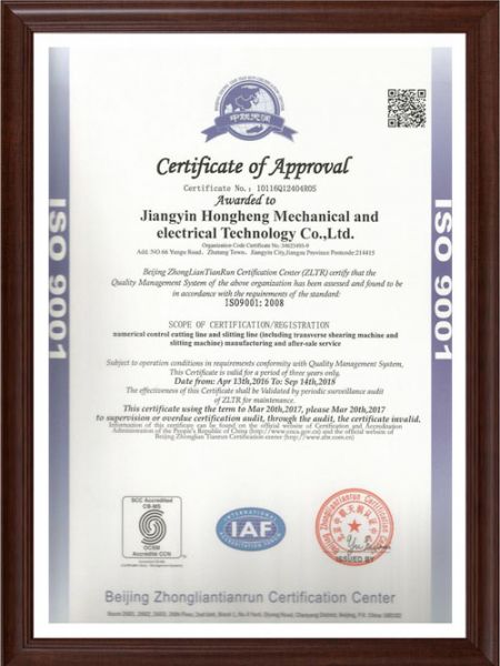 | 持证单位: 江阴宏恒机电科技有限公司 |