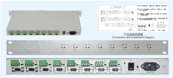多数的工业计算机系统都用标准的RS-232串行端口,但各种仪表使用485通信较多。集成串口转换器能让您在配有RS-232多串口卡的系统上使用RS-422及RS-485。它透明地将RS-232信号转成隔离的RS-422或RS-485信号。实现8路RS232信号输入,8路RS-422/485信号输出,可以很轻松地构建一个工业级的长距离通信系统。其配套串口扩展设备使各个串口与加气枪连接,每条加气枪均独占一个串口,独享一个数据解析协议,加气站监控管理系统命令通过独享串口下发给每条加气枪,因而提高了数据传输速度。